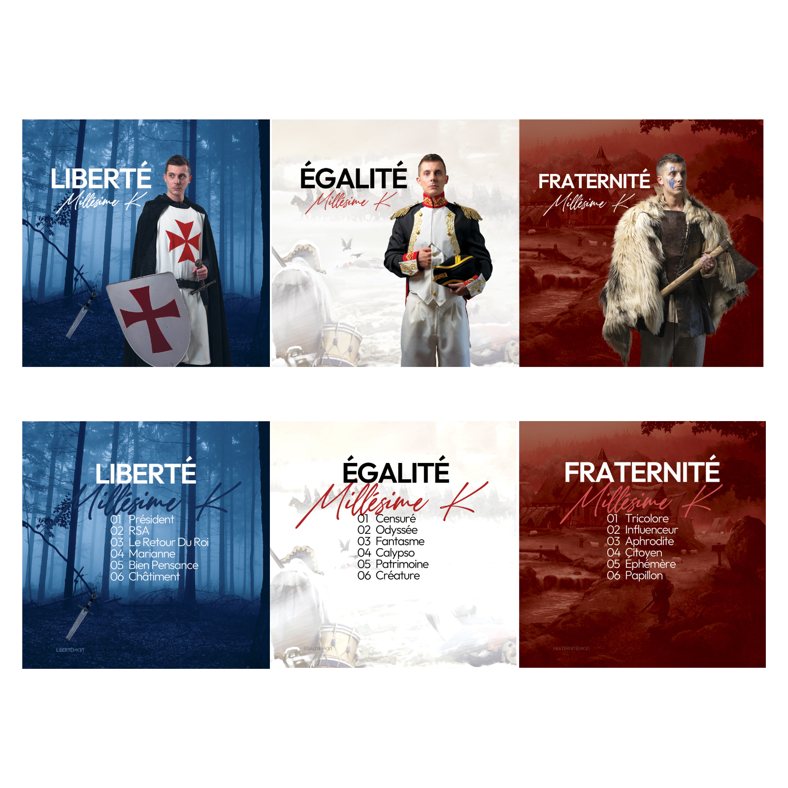 Trilogie réalisée par Millésime K, le porte-parole du peuple français oublié, disponible en format CD (physique) et MP3 (téléchargement).